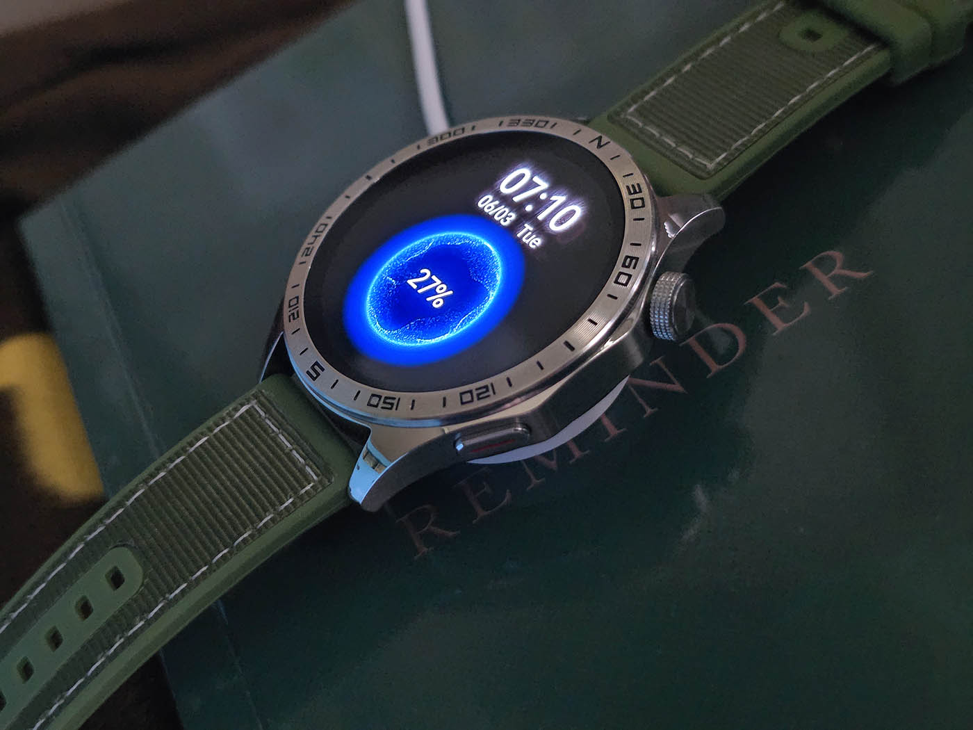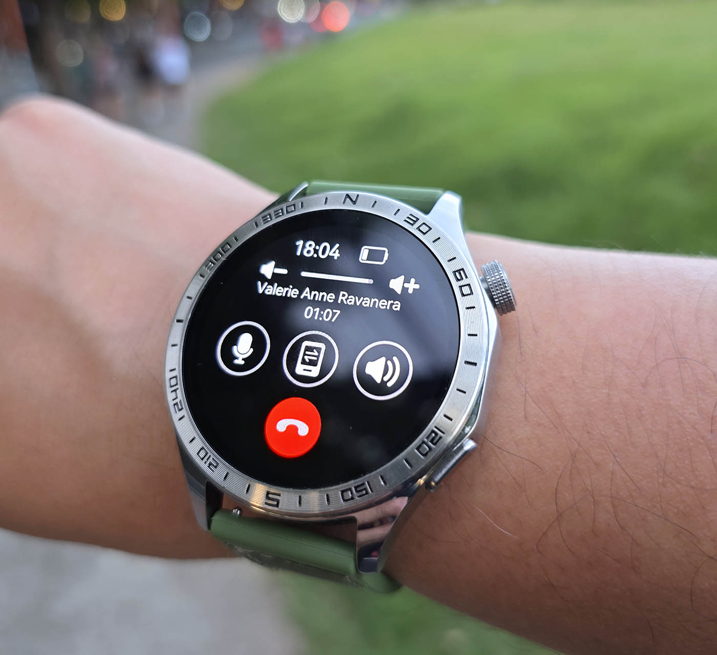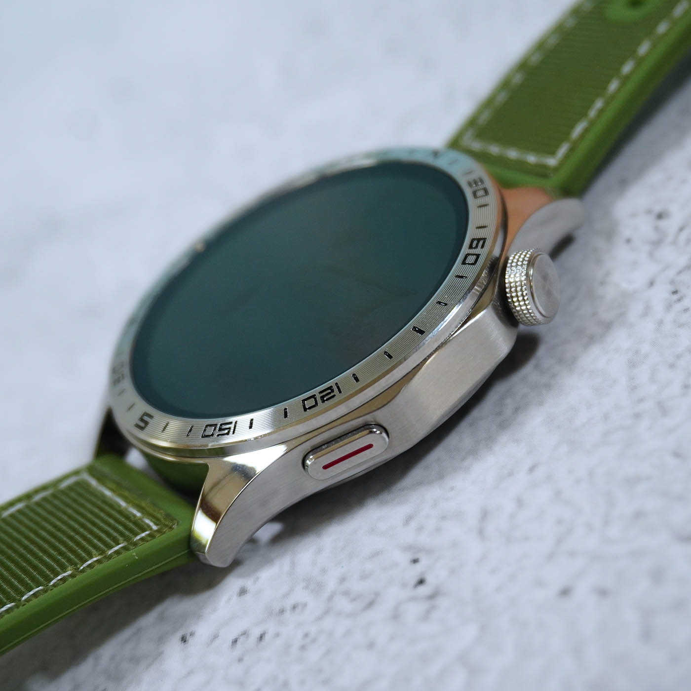 Wearing the TechLife Smart Watch P1, we can’t help but notice how much it stands out from its military-inspired design down to the polished silver metal finish. The green strap adds a nice touch, complementing the rugged-yet-premium look. We’re also excited to try out different strap styles or colors to switch things up and match our daily outfits.